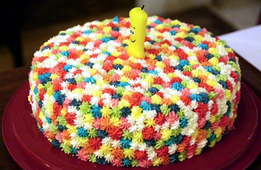 Zdobienie bardzo proste, ale dosyć czasochłonne i wymagające cierpliwości. Być może na zdjęciach tego nie widać, ale na torcie znajdziecie wszystkie kolory tęczy. Tym razem jednak, nazwałabym go tortem confetti ;)